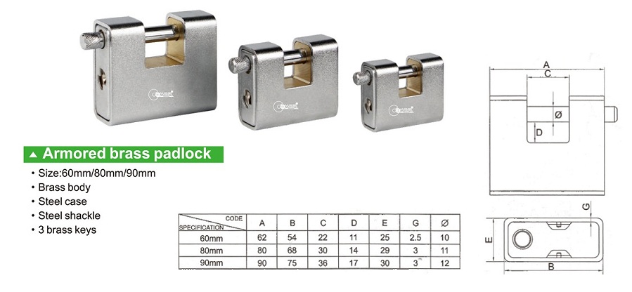 Armored brass padlock